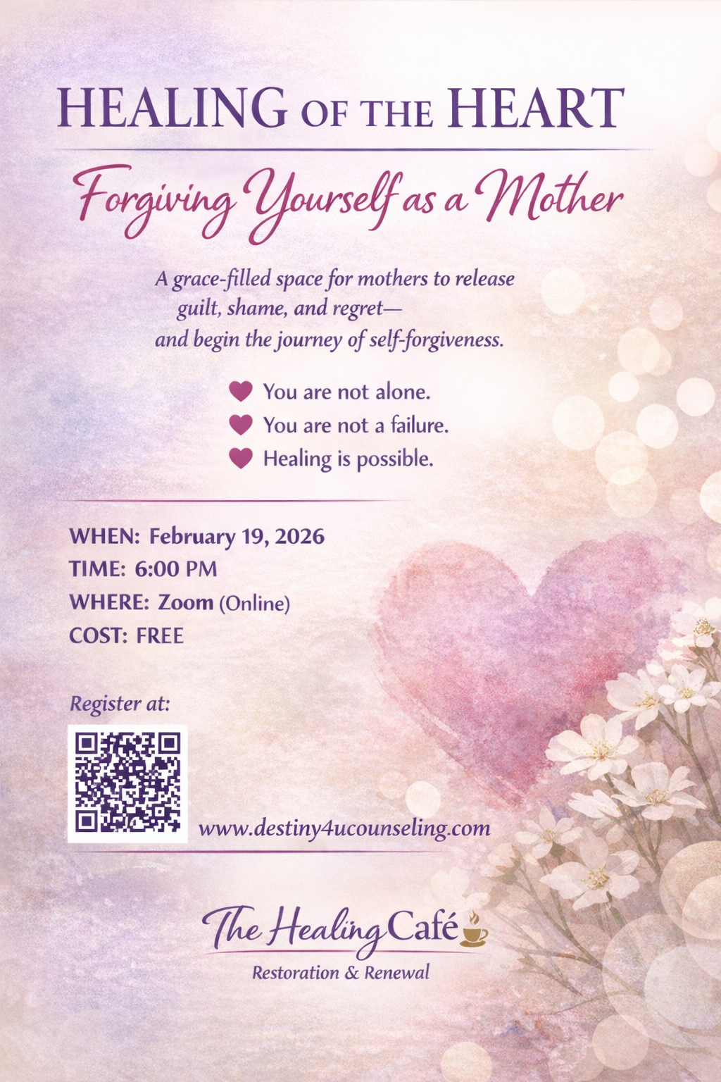 "True healing begins within, where the power to mend, transform, and peace lies. At The Healing Cafe, we embrace the journey of self-discovery and put a demand on inner healing. It's a sacred process that uncovers our hidden strength, restores our spirit, and allows us to bloom into our true selves."